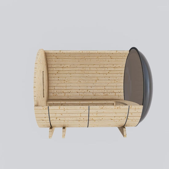 We’re two brothers running a small woodworking shop, proudly offering this handcrafted 8-foot Barrel Sauna. Built for nature lovers, this unit features a panoramic acrylic back window—bringing the outdoors right into your sauna session.