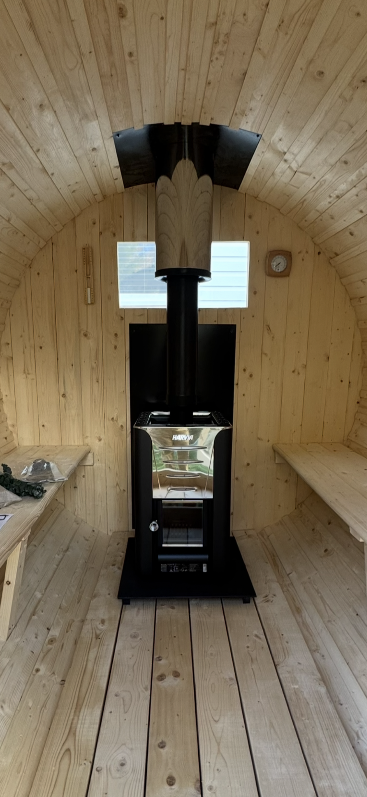 We’re two brothers who have recently started our own woodworking shop, and we’re proud to offer this beautifully handcrafted 8-foot Barrel Sauna! Perfect for your backyard for that authentic, cozy experience.