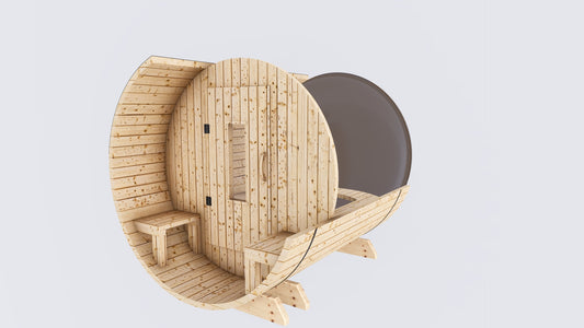 Barrel Sauna 7X8 With Porch Panoramic Acrylic Back Window